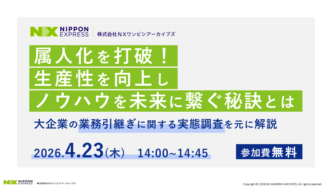 本ウェビナーでは、当社の「大企業の業務引き継ぎに関する実態調査」をもとに、引継ぎの課題に根差しているデータ管理の問題と、それを解決する3つのシステムについて、業務引継ぎの観点から見た比較を交えながら解説します。