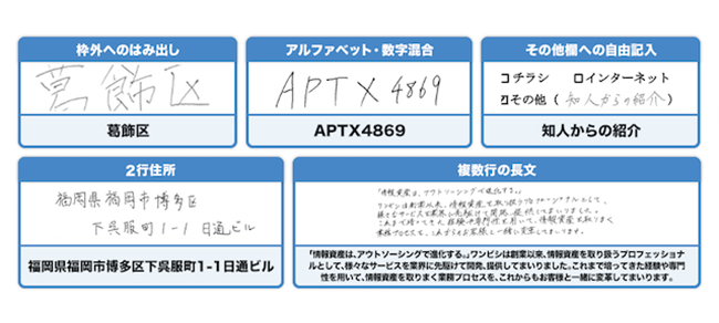 | 各種業種共通 | 請求書・注文書・各種報告書・各種アンケート・勤怠管理表・交通費証憑・顧客名簿 |